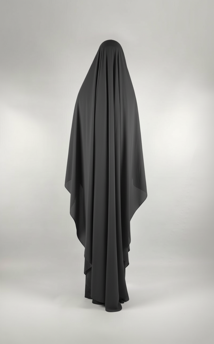 Beautiful and silky gashwa (khimar) in dark grey color: